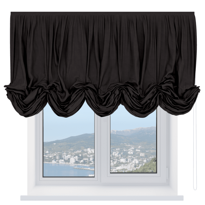 Австрийская штора вельвет тёмно-коричневый, карниз верёвочный